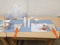 Ein echtes Highlight war das „Schwarzlichttheater“: Nachdem die Zähne mit einer fluoreszierenden Flüssigkeit angefärbt worden waren, leuchteten Zahnbeläge plötzlich in grellem Neongelb auf. Für viele ein Aha-Moment – und eine anschauliche Erinnerung daran, wo beim Putzen oft etwas übersehen wird.