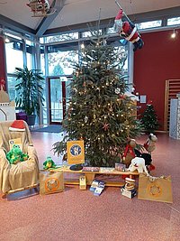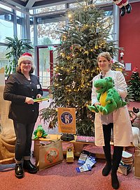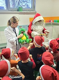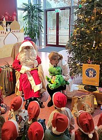 Die Kita Krümelhausen in Oranienburg wurde als "Kita mit Biss" zertifiziert. Das Besondere daran: Der Weihnachtsmann und Kroki übten mit den Kindern das Zähneputzen.